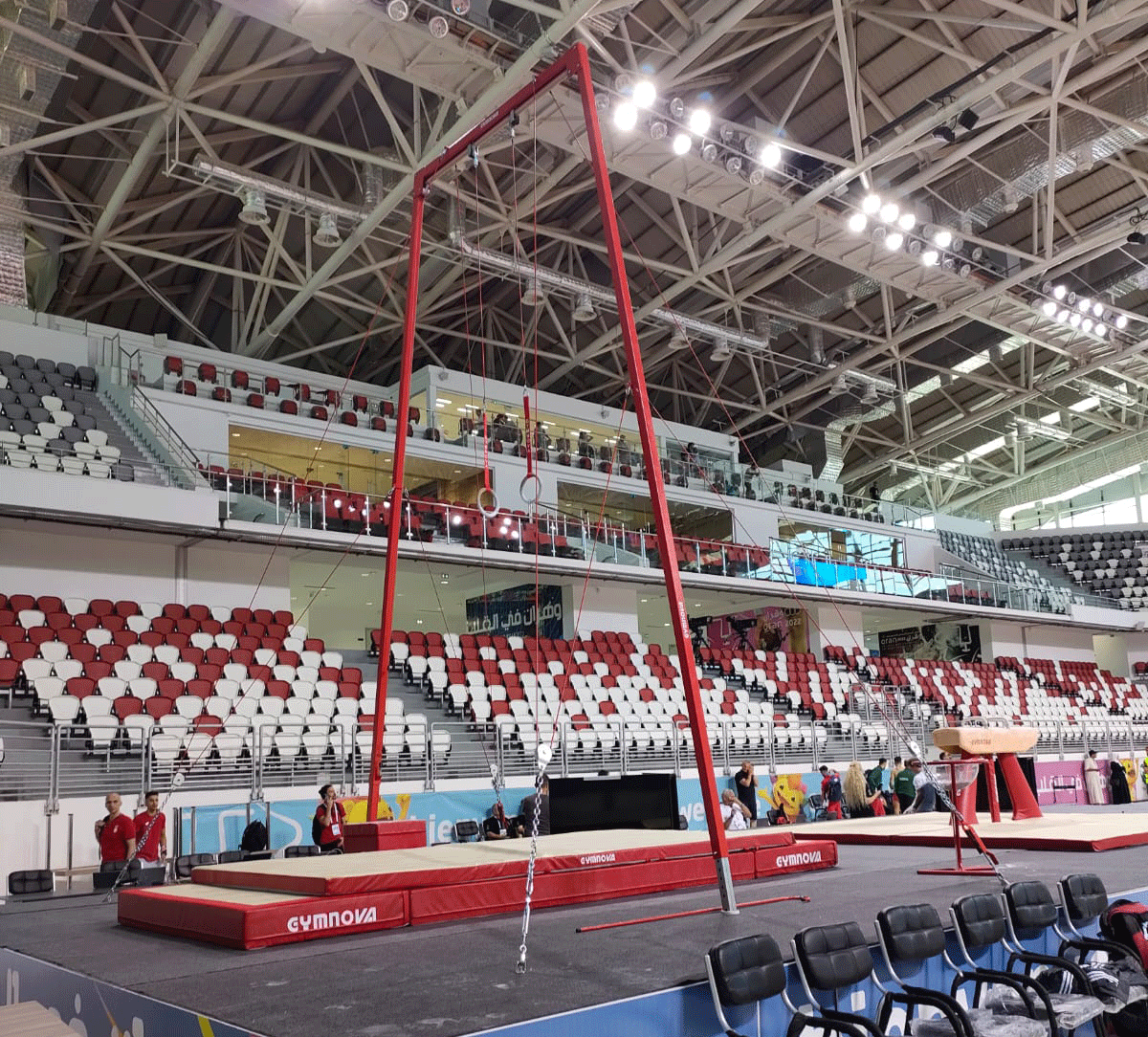 Este conjunto de colchonetas homologada por la FIG es específico de los anillas de competición. Formada por un conjunto de espumas multicapa que permiten un mejor reparto de cargas y una estabilización optima en las recepciones.