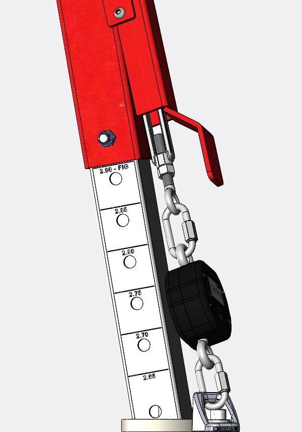 Puede regularse fácilmente en función de la estatura del gimnasta. Se puede conocer fácilmente la altura gracias a una marca visible en la corredera. La tensión y la amortiguación también pueden modificarse sin dificultad, en particular gracias a las placas de apoyo y a los silentblocs.