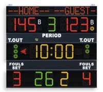 Aprobado por la F.I.B.A. para el modelo FS-130N (info, certificado FIBA). Puede ser usado junto con otros modelos para formar tableros grandes donde dar varia información (info).