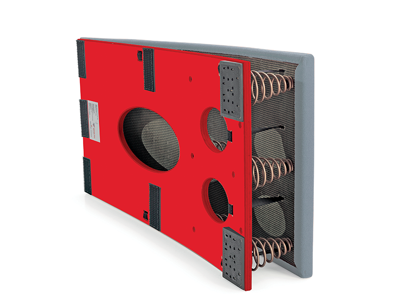 • Plataforma de dimensiones homologadas (120 x 60 cm) de contrachapado y fibra de vidrio curvada, recubierta con una colchoneta enmoquetada
